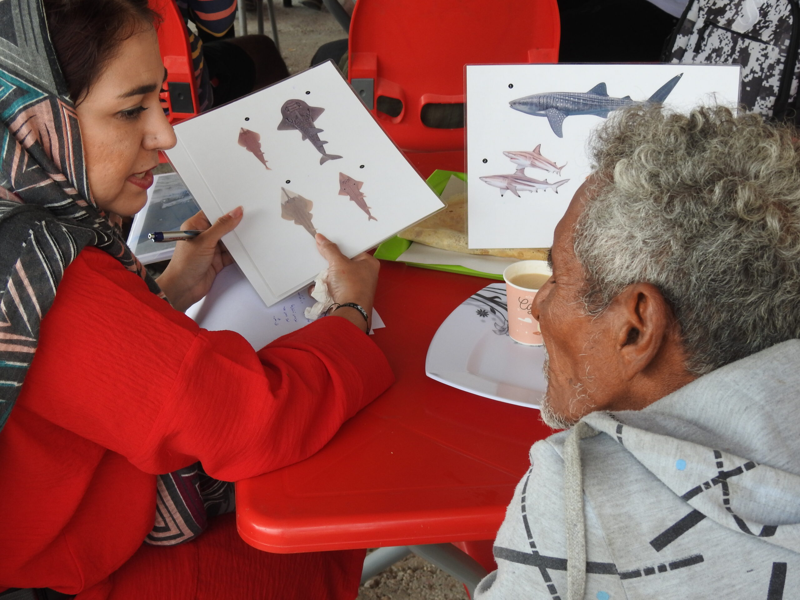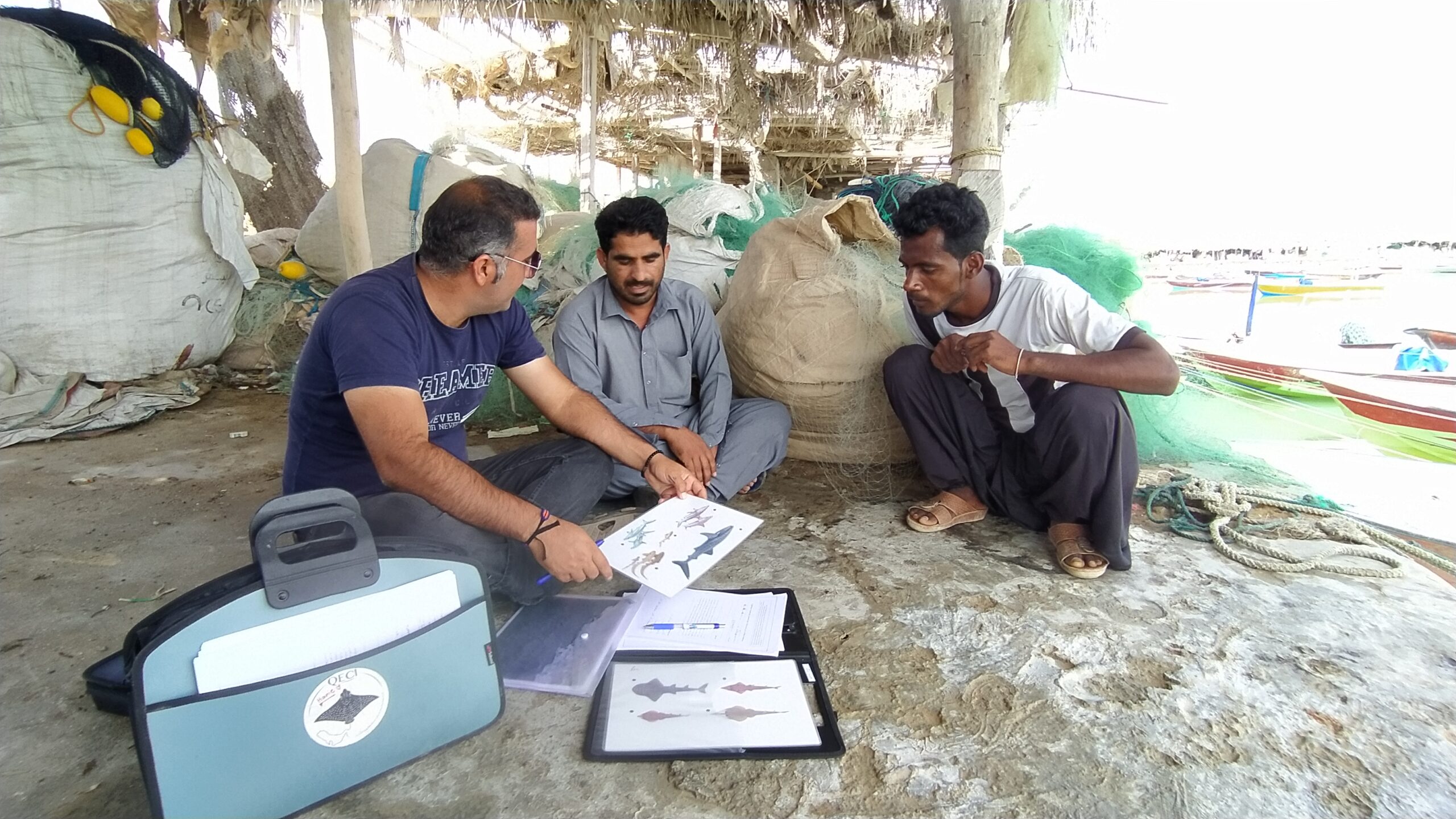 Mohsen assembled a diverse team of scientists, with both experienced marine biologists and dedicated biology students. This strong group of 8 scientists dedicated to protecting the ocean was named “8-Oceans”, as Mohsen believes each of them has the power of an ocean and shouldn’t underestimate themselves. Together with social scientists, they developed questionnaires to successfully gather the fishermen’s current and historical marine biodiversity knowledge. In only a month, the team visited over 45 coastal towns, villages, and islands along the southern Iranian coast. They interviewed more than 700 fishermen about sharks, guitarfishes, wedgefishes, rays, marine turtles, and cetaceans.