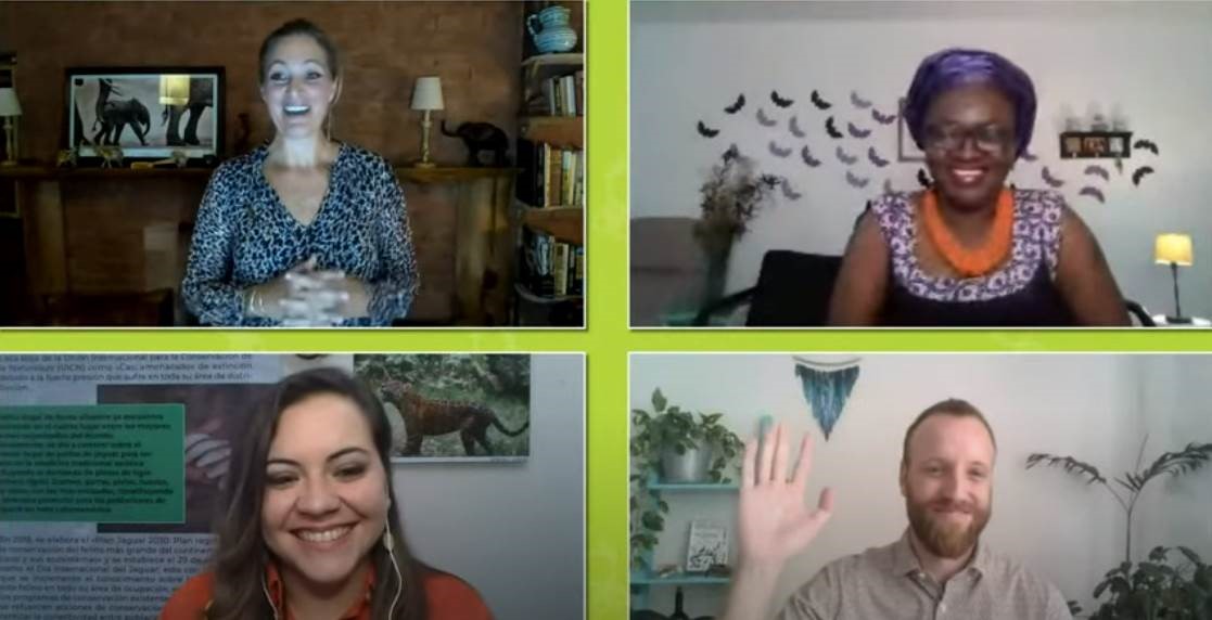 Hundreds of people joined the FFN Award celebration from home via the Hopin, YouTube, or Facebook livestream. Our dazzling host Saba Douglas-Hamilton opened the event live from her home in Kenya. Each of the winners took the opportunity to present their conservation work to the attentive audience at home, all from their living room. Iroro, live from Texas in the United States, inspirationally spoke about her work protection the Short-tailed Roundleaf bat in Nigeria and her accomplishments in this area. María Fernanda, tuning in from Venezuela, conveyed her message of hope for the jaguars that she is trying to save, while facing some dangerous obstacles. Lastly, Tjalle, streaming from Bolivia, talked about the Blue-throated Macaw and his progress in helping this animal thrive while there are only a few left in the wild.